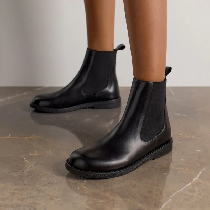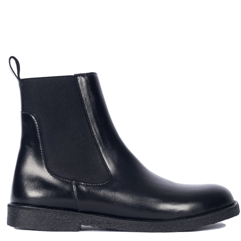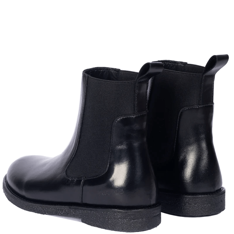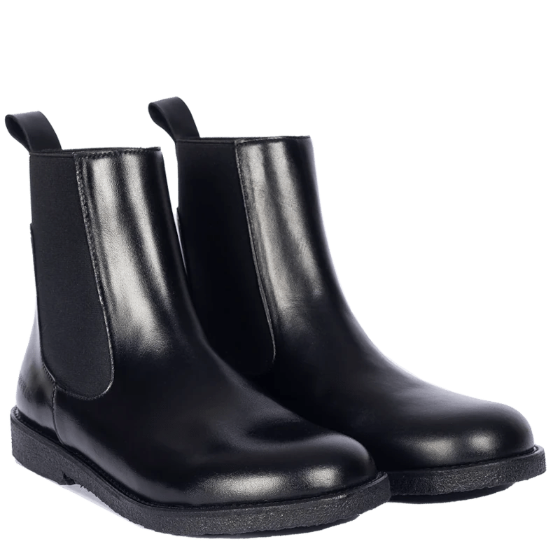 Klassisk Chelsea støvle i læder. Støvlen har en rund snude, vatteret indersål, kromfrit læderfor, skaft med hælstrop og funktionel ribelastik, der gør støvlen nem at få af og på, samt en let, blød og fleksibel sort rågummisål i fornybar naturgummi. Elastikken går hele vejen rundt bag på for ekstra fleksibilitet og komfort. Udformet i naturligt og åndbart skind. Designet i Danmark og håndlavet med kærlighed i Portugal.